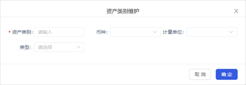 资产类别: 支持输入中文、英文字母,需确保唯一。
