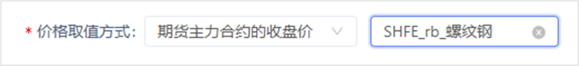 价格取值方式:现货品种行情价格取值方式,支持手工录入、参照期货合约价格计算。