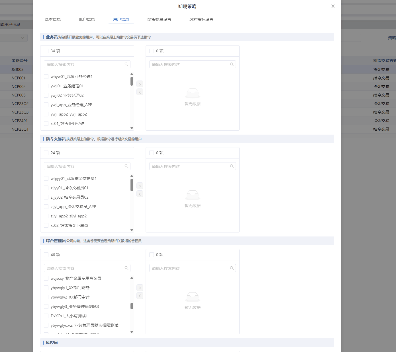 业务员:负责该策略的业务,可对负责的策略导入现货数据、期现匹配等操作;指令交易方式,可在指令端对策略下达期货交易指令。